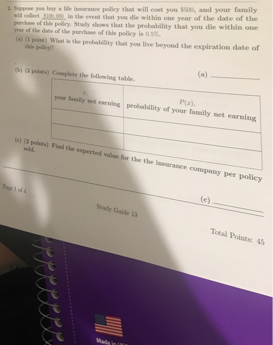 Solved 2 Suppose You Buy A Life Insurance Policy That Will Chegg Com